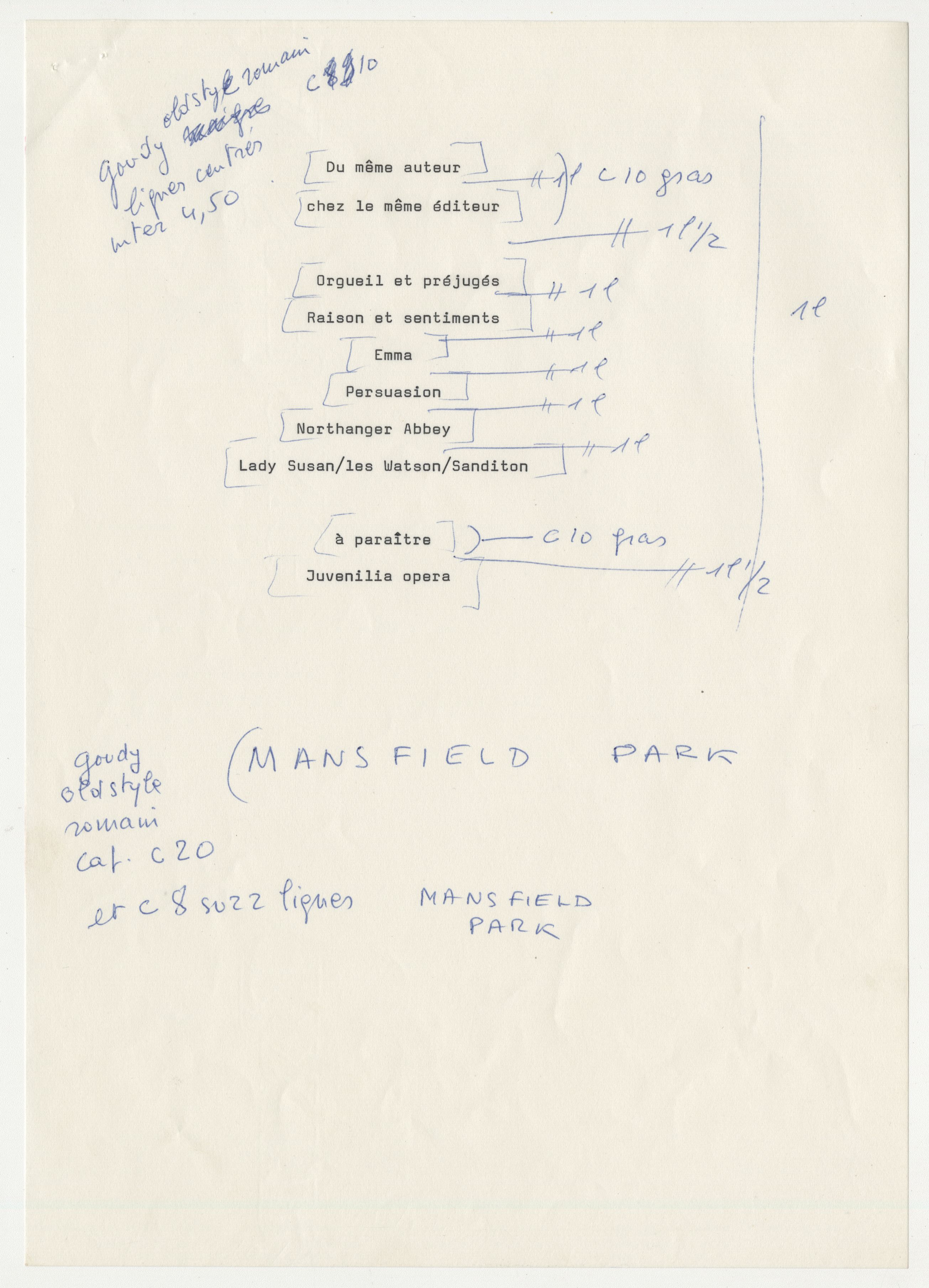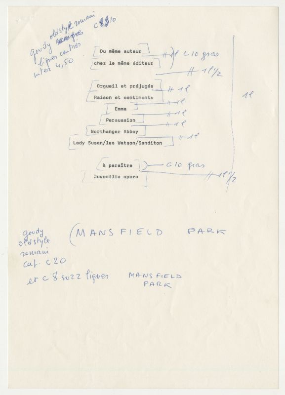 - Les archives de Christine Jordis, autrice de la préface de Persuasion paru en 1979 aux Éditions Christian Bourgois sont également déposées à l’Imec.
